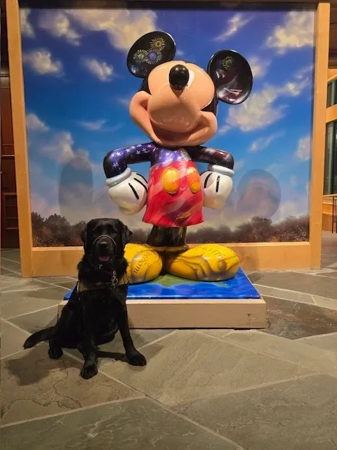 In August, we went to Disney together. Yes, August. It was brutally hot — the kind of heat that makes even the most prepared question their decisions. Mae is darker than dark, and I won’t pretend it wasn’t scary at times. But we adapted. We learned. Cooling vests, cooling collars, training her to wear the gear, managing rest, hydration, and pacing. It was challenging, exhausting, amazing, and absolutely worth it. We came out the other side more confident, more capable, and more connected.